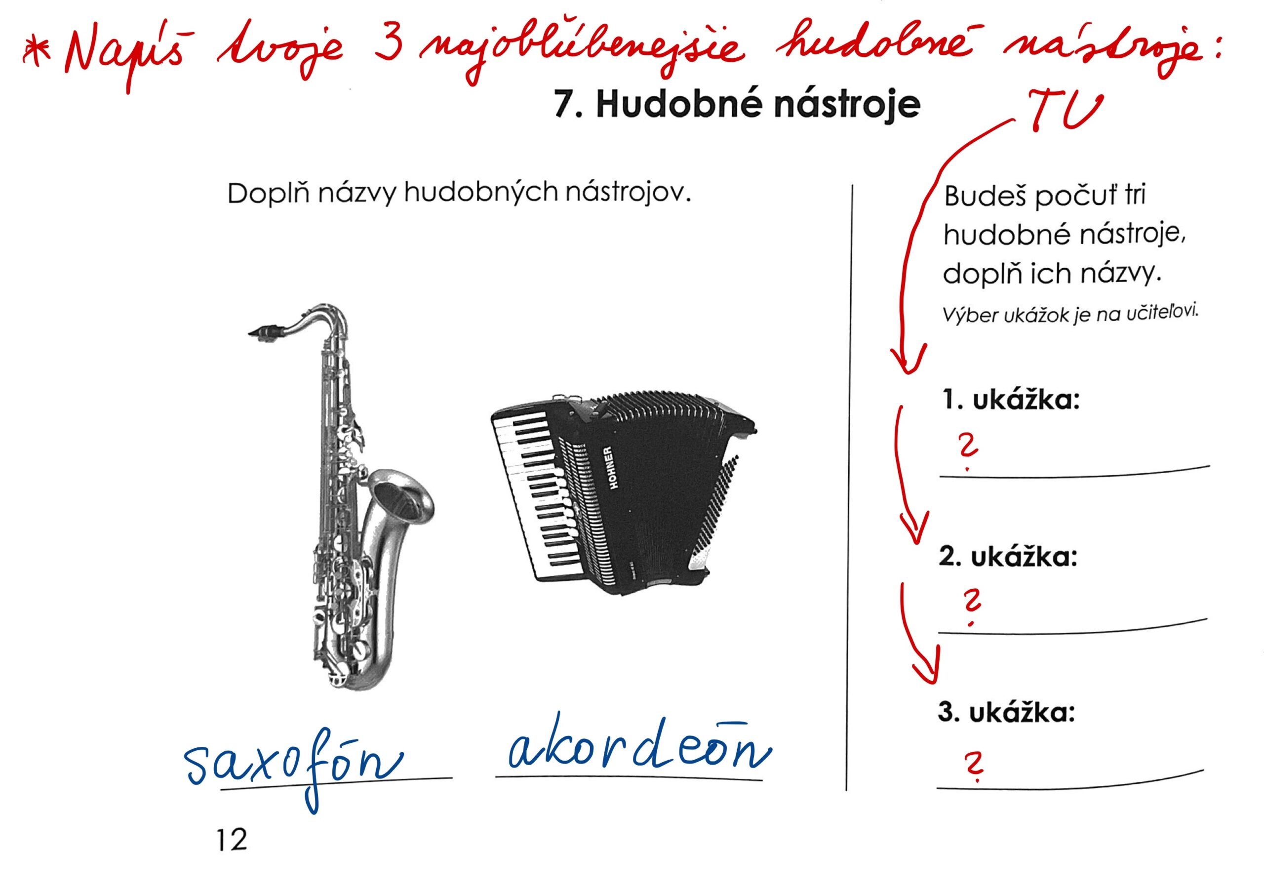 Učivo a úloha z 14. 10. – Kapitola 7 a 8. Vedieť zaradiť hudobné nástroje do kategórií. Vedieť čo je T-S-D