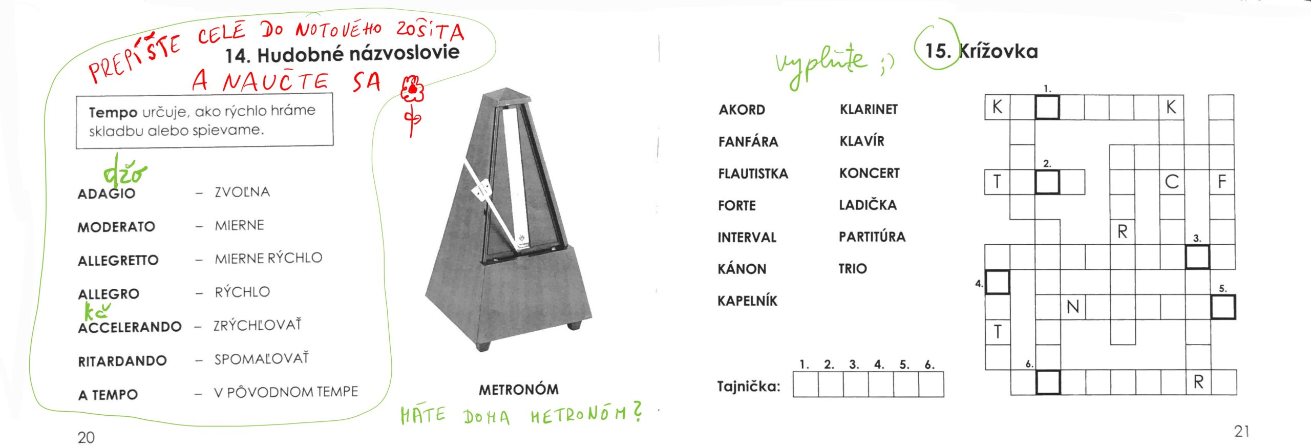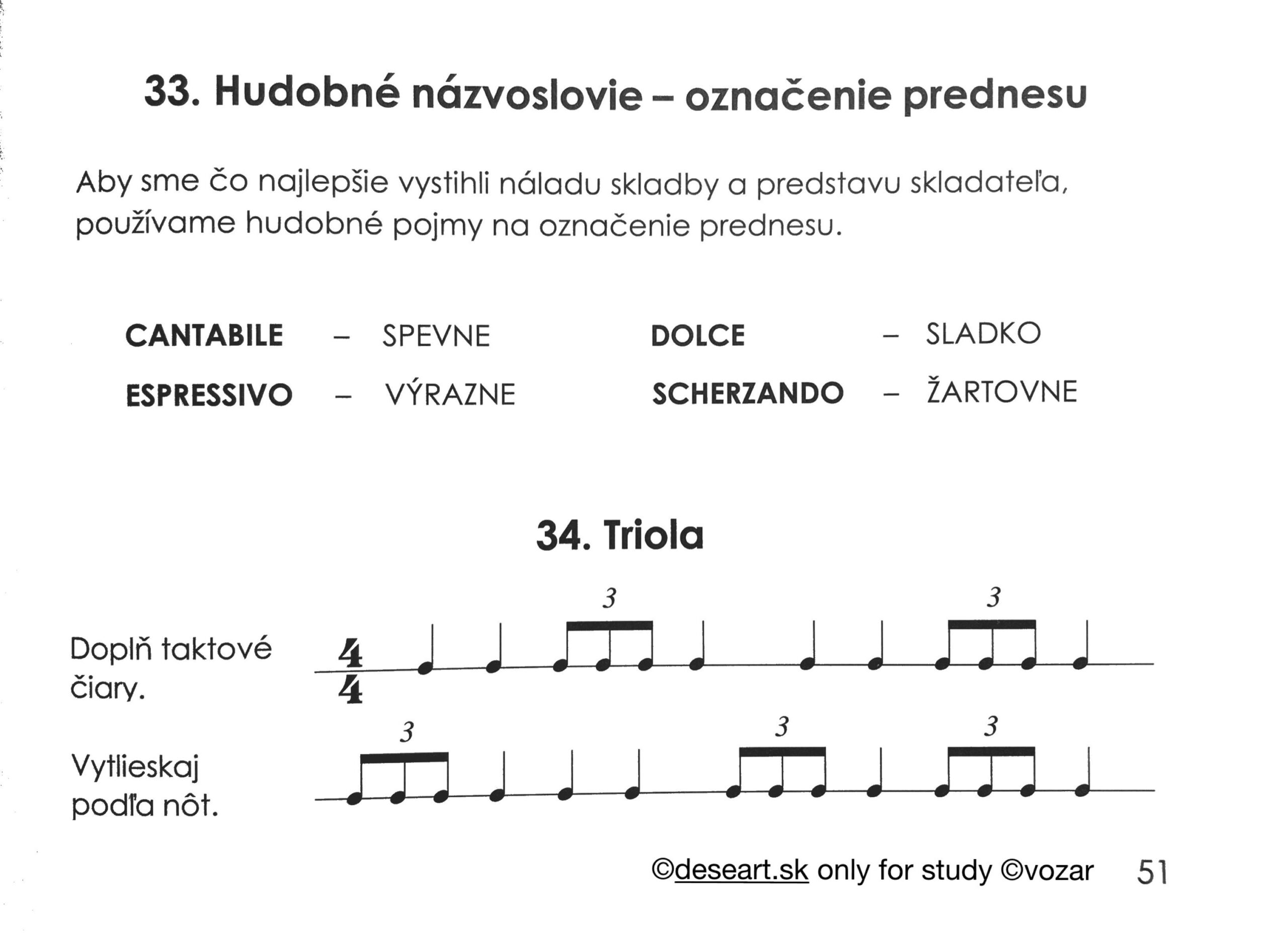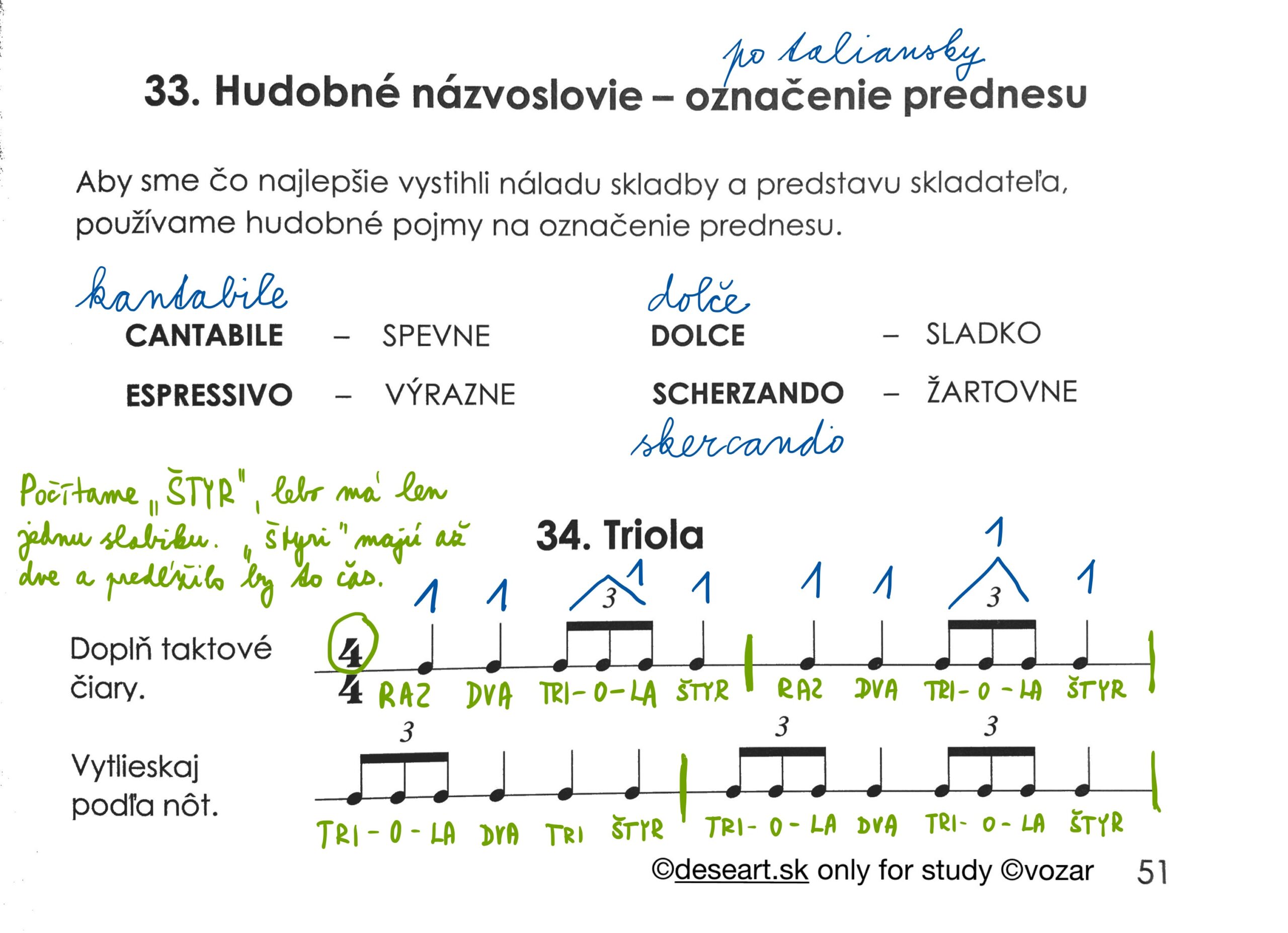 Úloha na 28. 4. – prepíšte si do knižky stranu 50 a 51 podľa vzoru nižšie. Skúšam kapitolu 33 – 4 slovíčka po taliansky (vedieť ako sa píšu, ako sa čítajú a čo v hudbe znamenajú). Kapitolu 34 Triola budeme preberať až v pondelok, ale môžete si to už do knihy prepísať