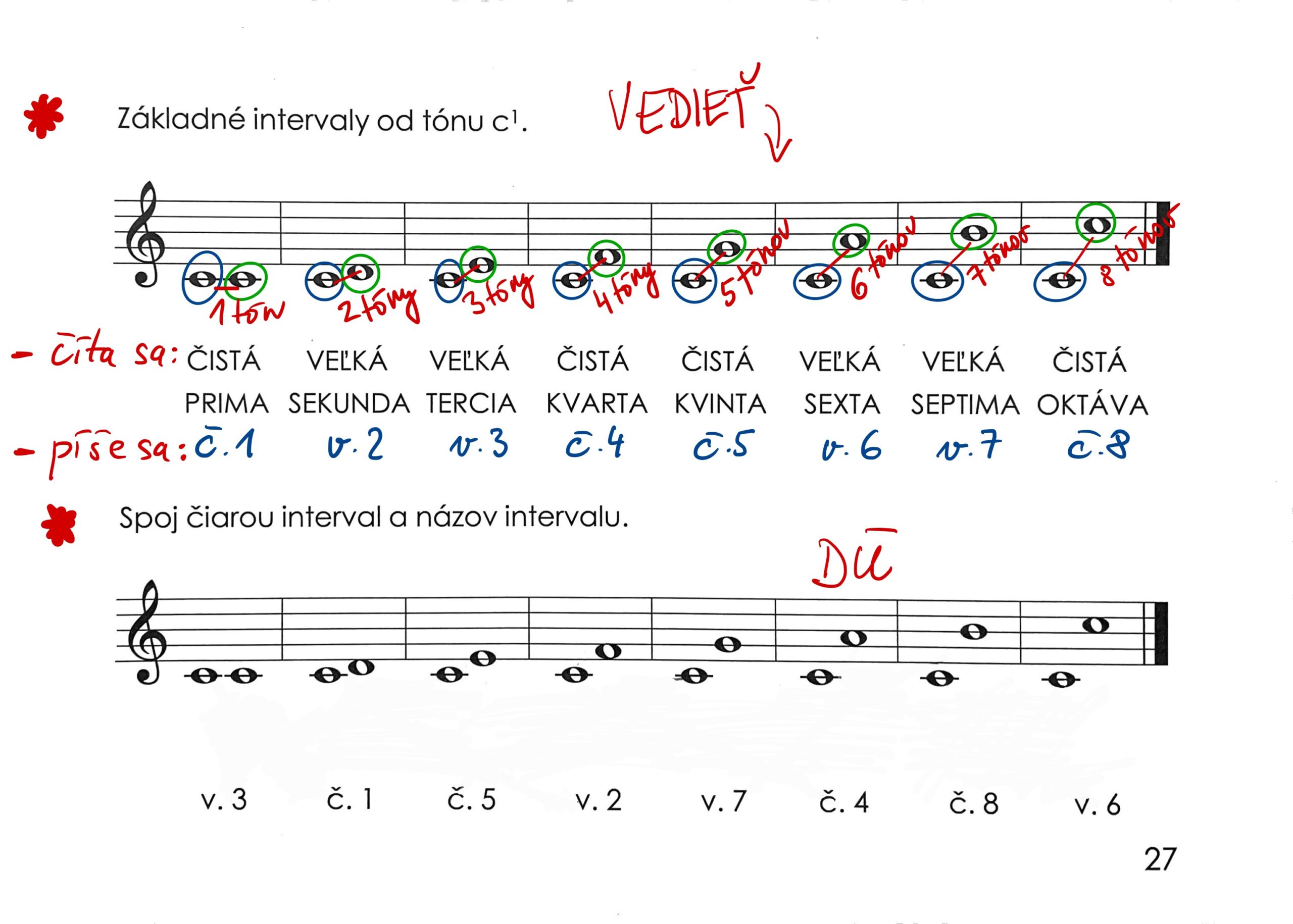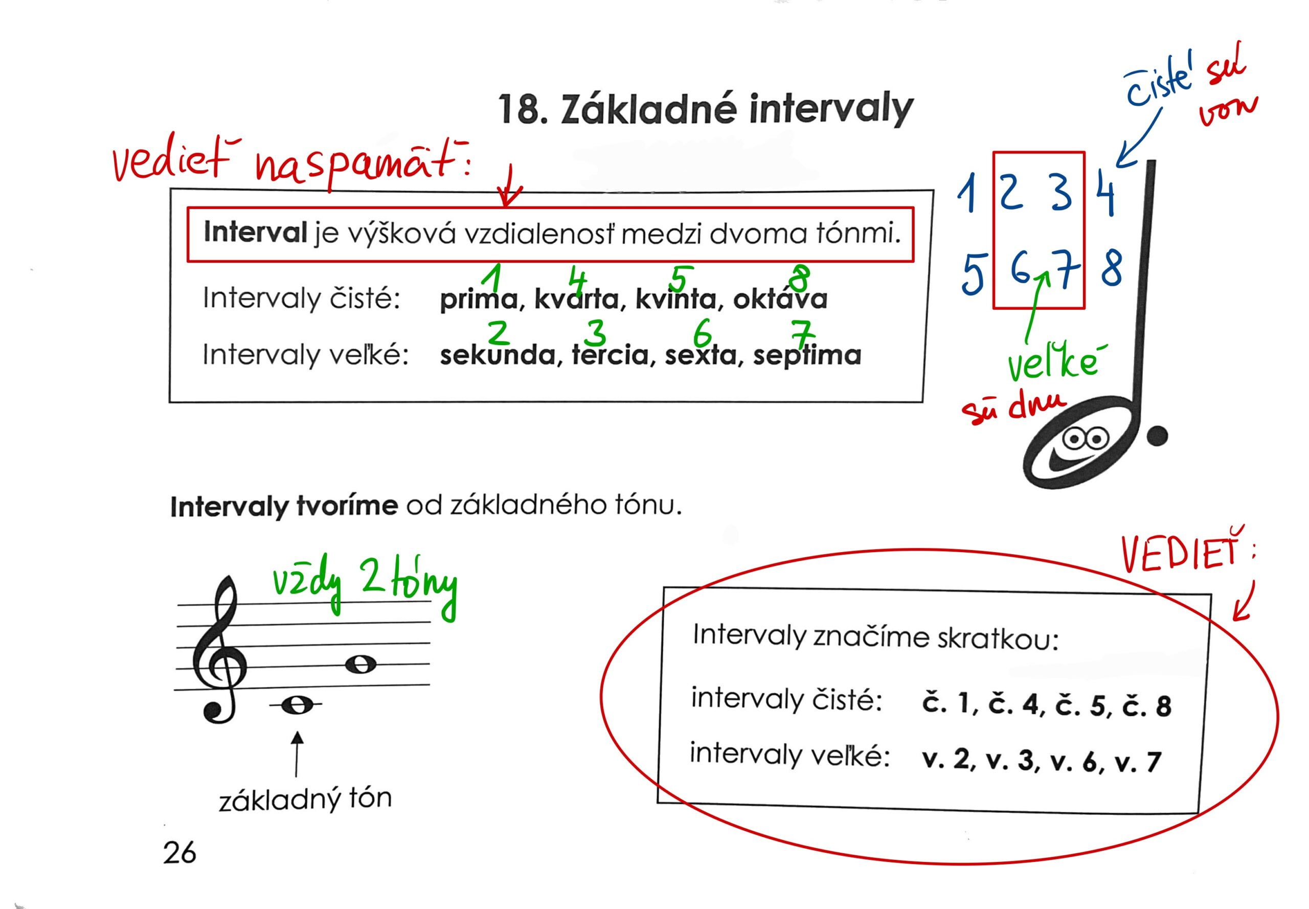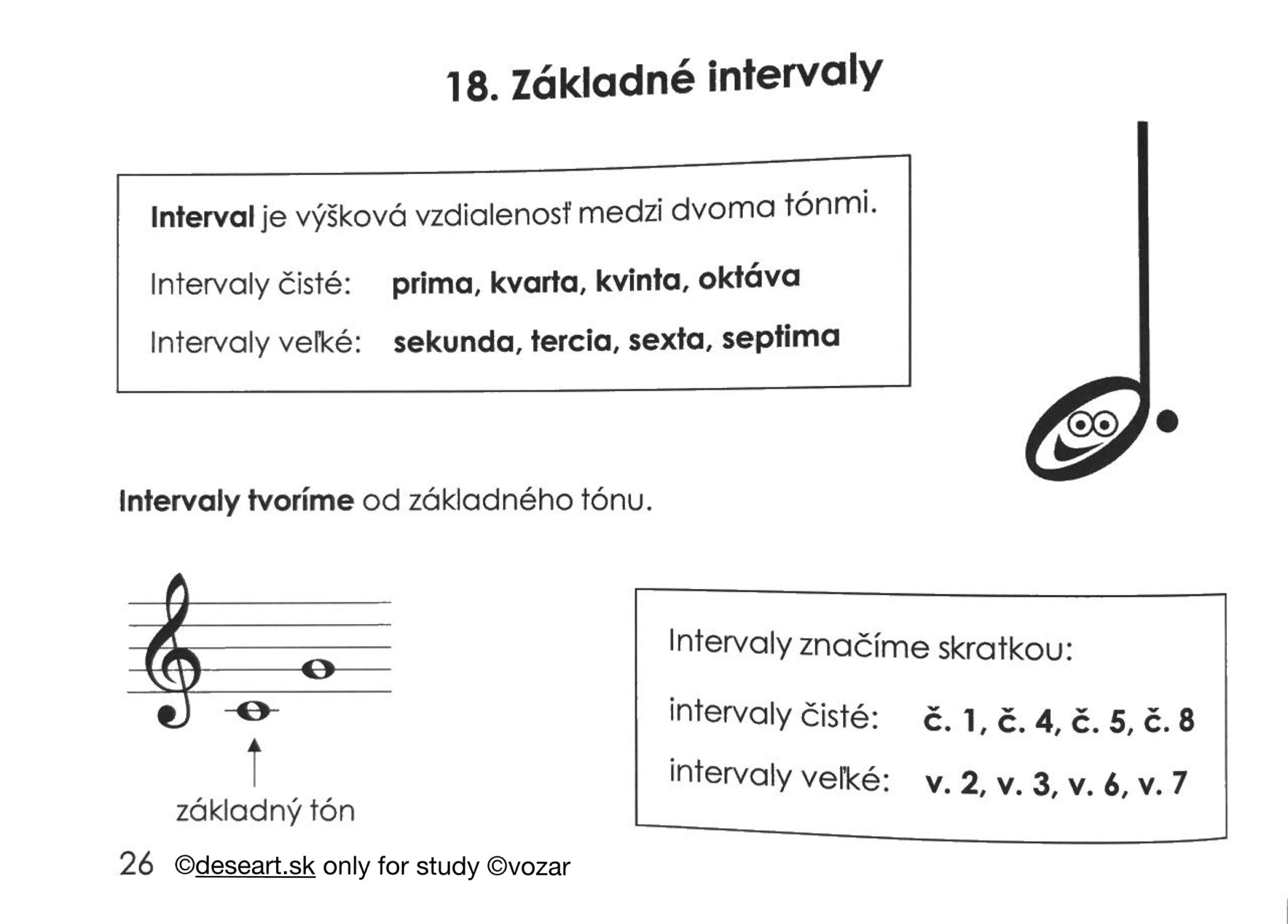 Základné intervaly kapitola 18 – vedieť celú kapitolu a v knižke mať napísané podľa vzoru nižšie: