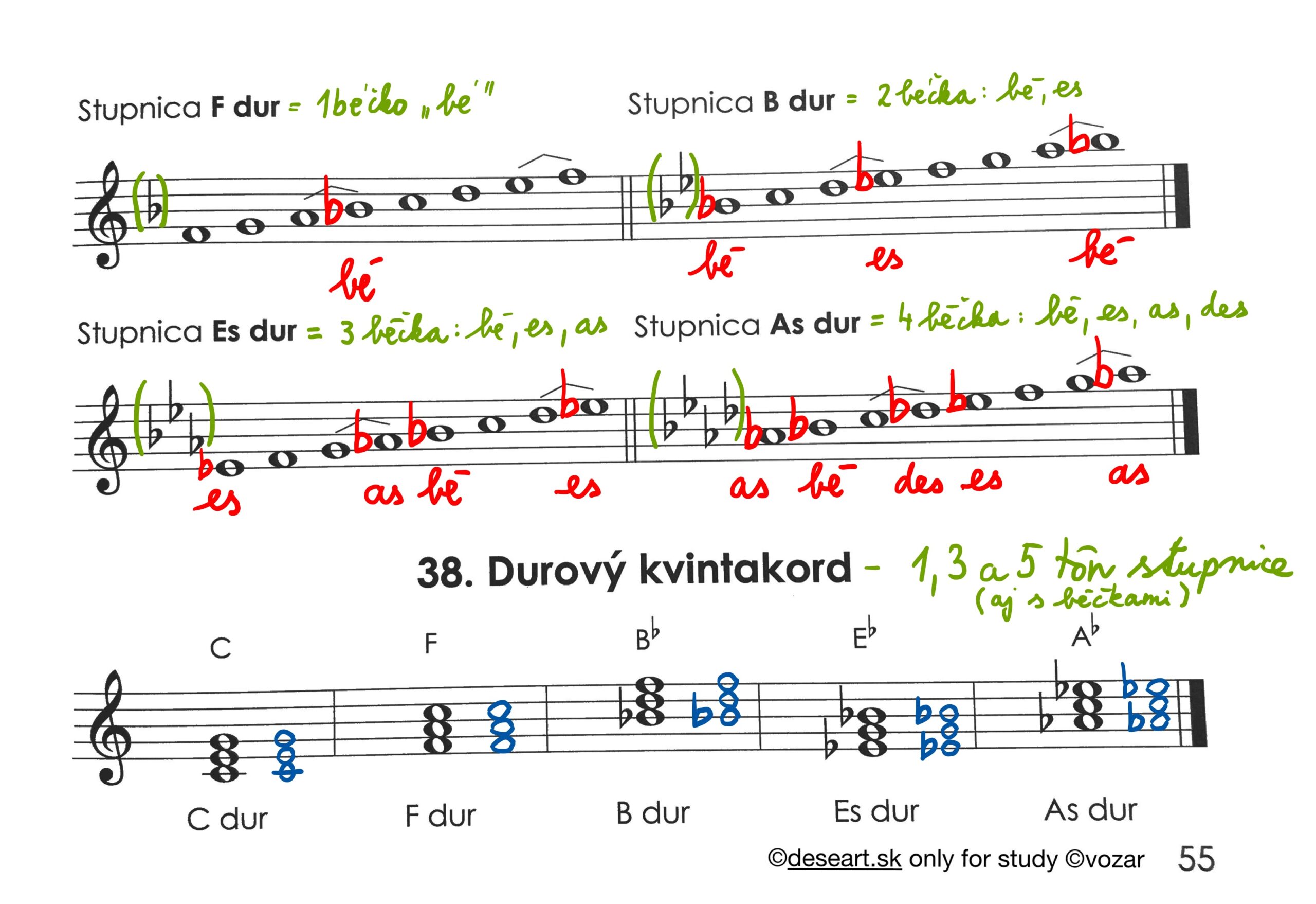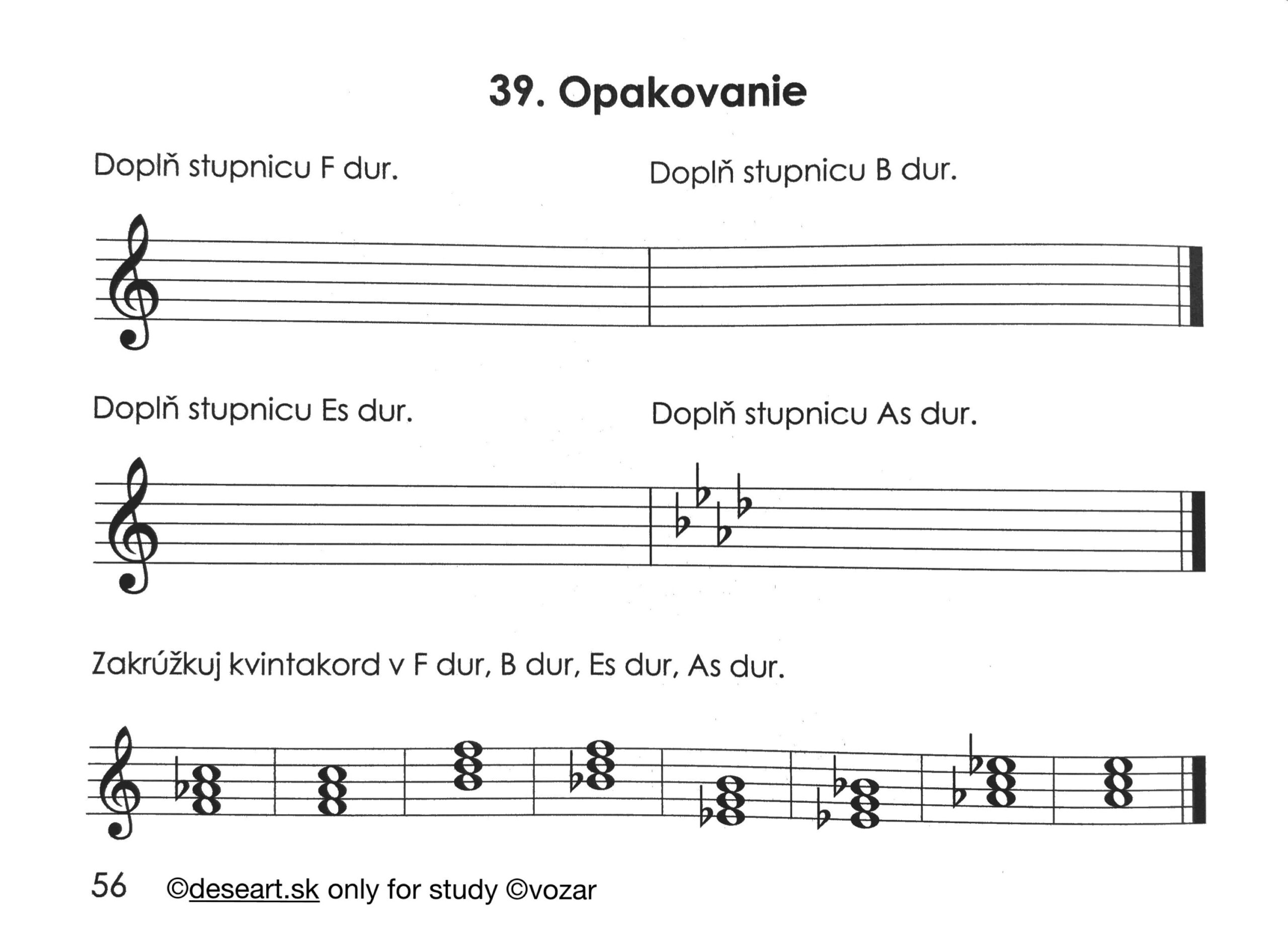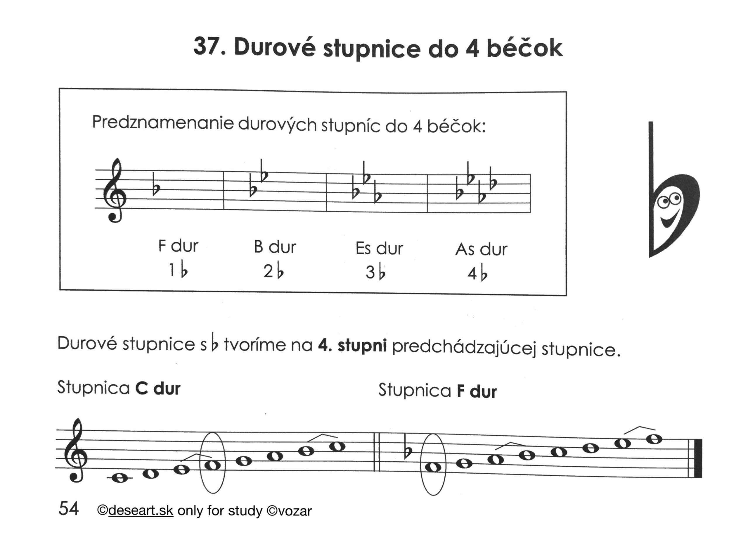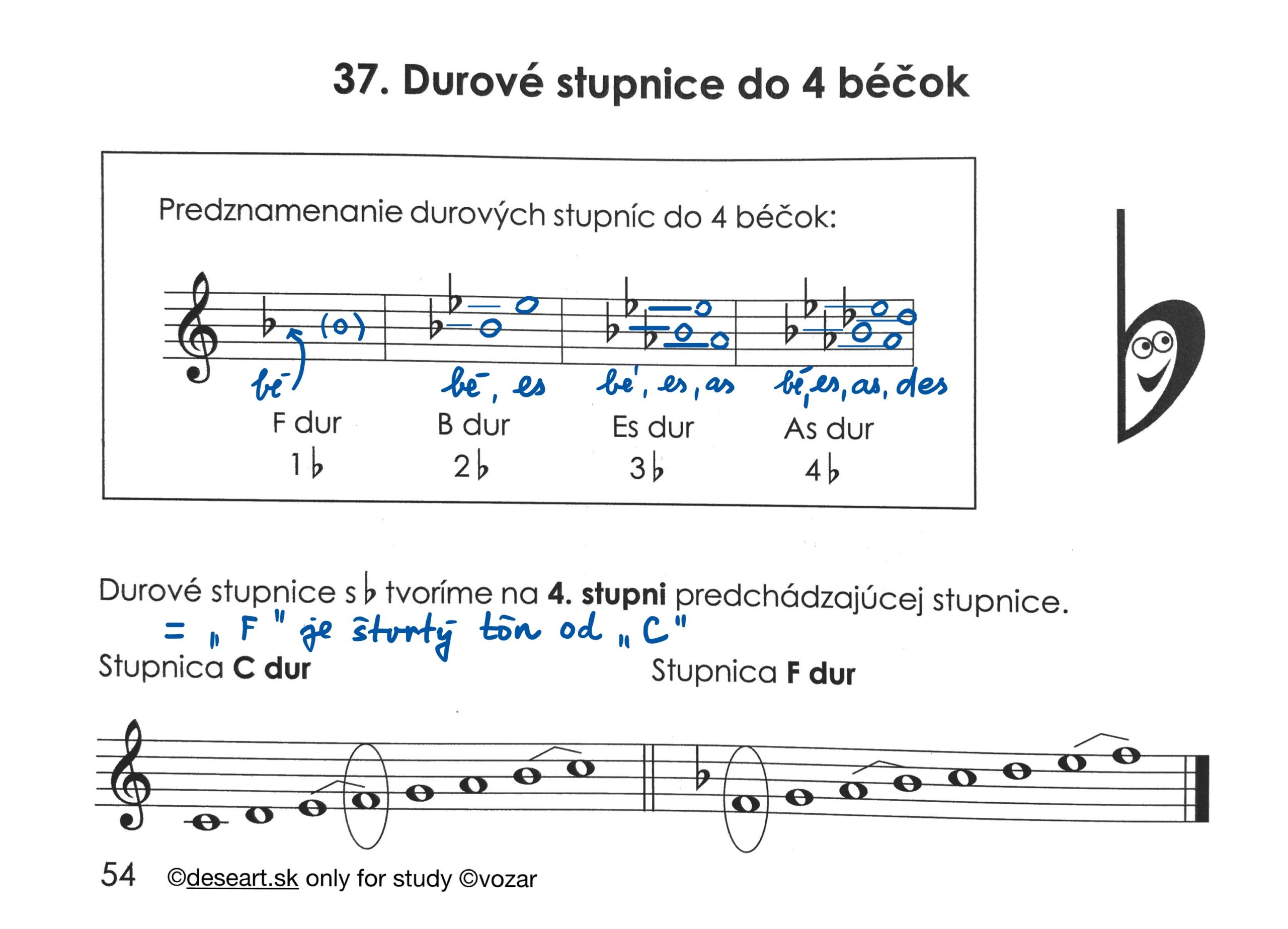 Úloha na 5. 5. 2025: Kapitola 37 – prepíšte presne do knižky podľa obrázkov.Naučte sa napísať stupnicu F dur, B dur, Es dur a As dur + akordy