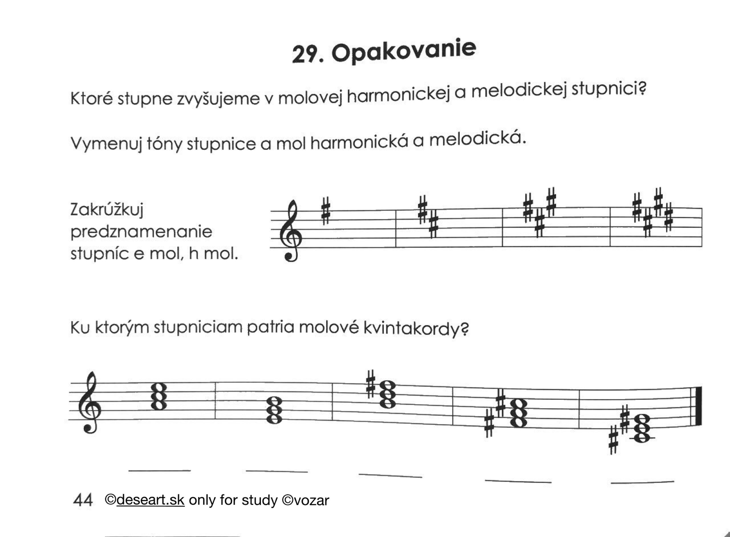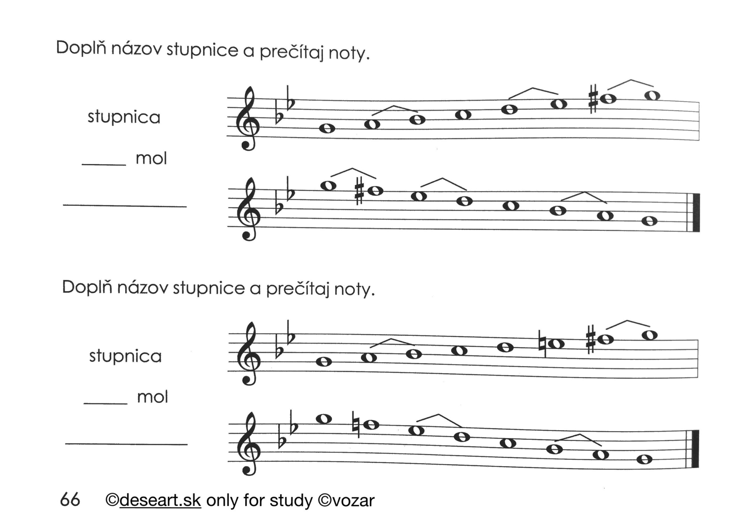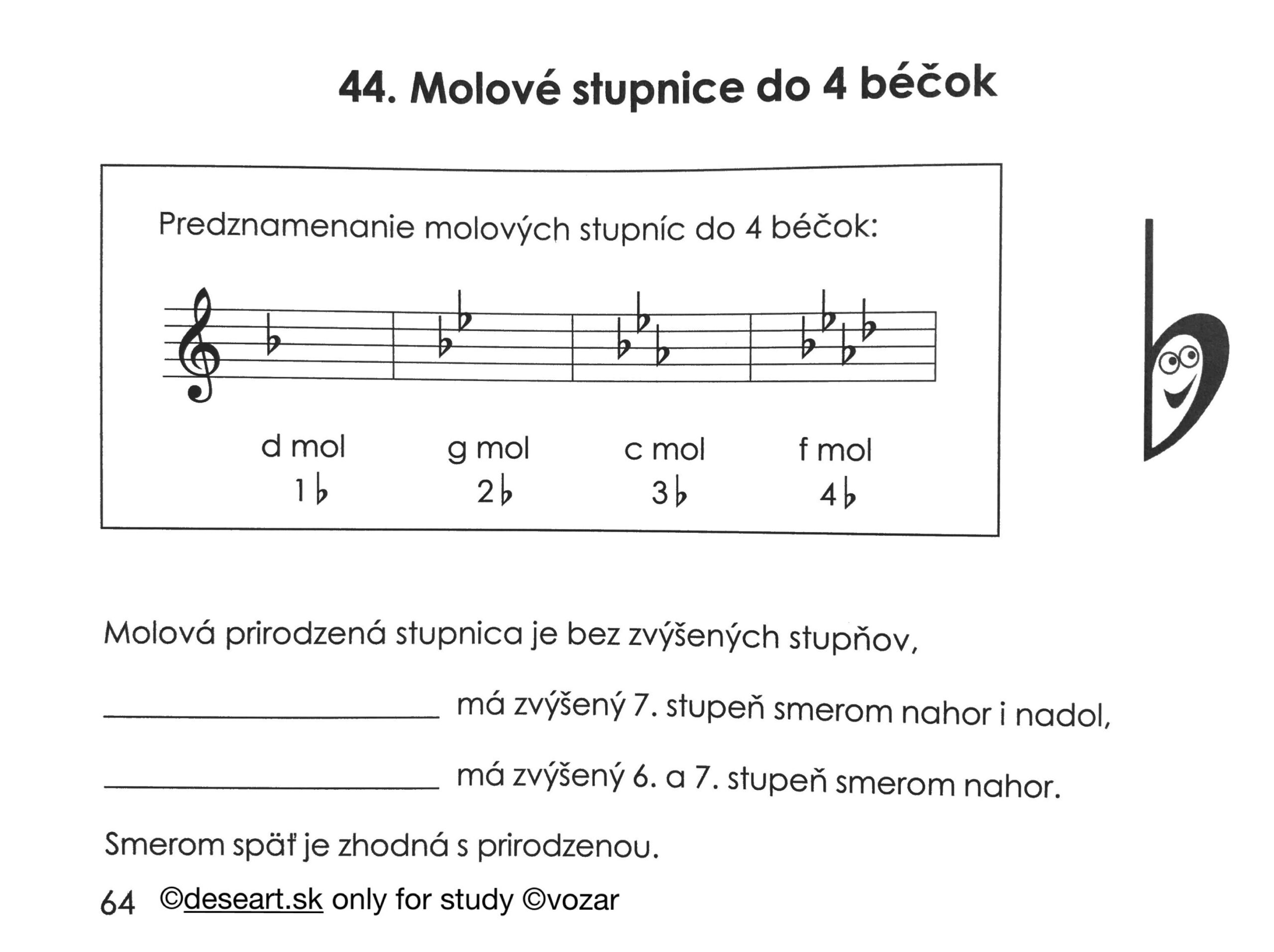 – Kapitola 44 – Molové stupnice do 4 béčok. Mať napísané v knižke podľa vzoru nižšie strany 64 až 66: