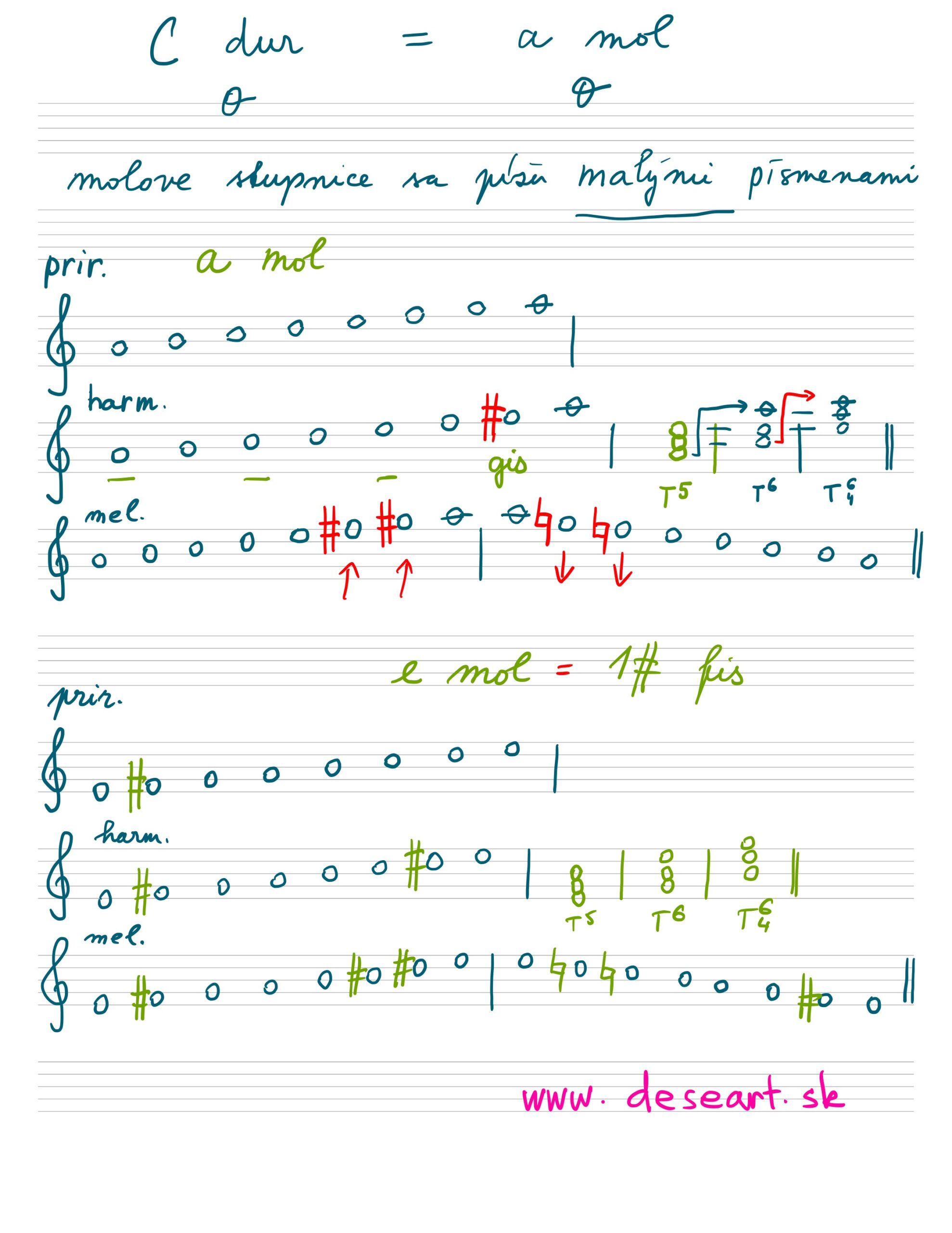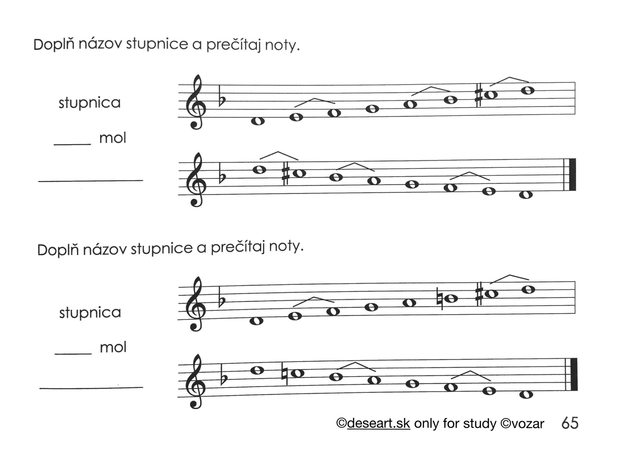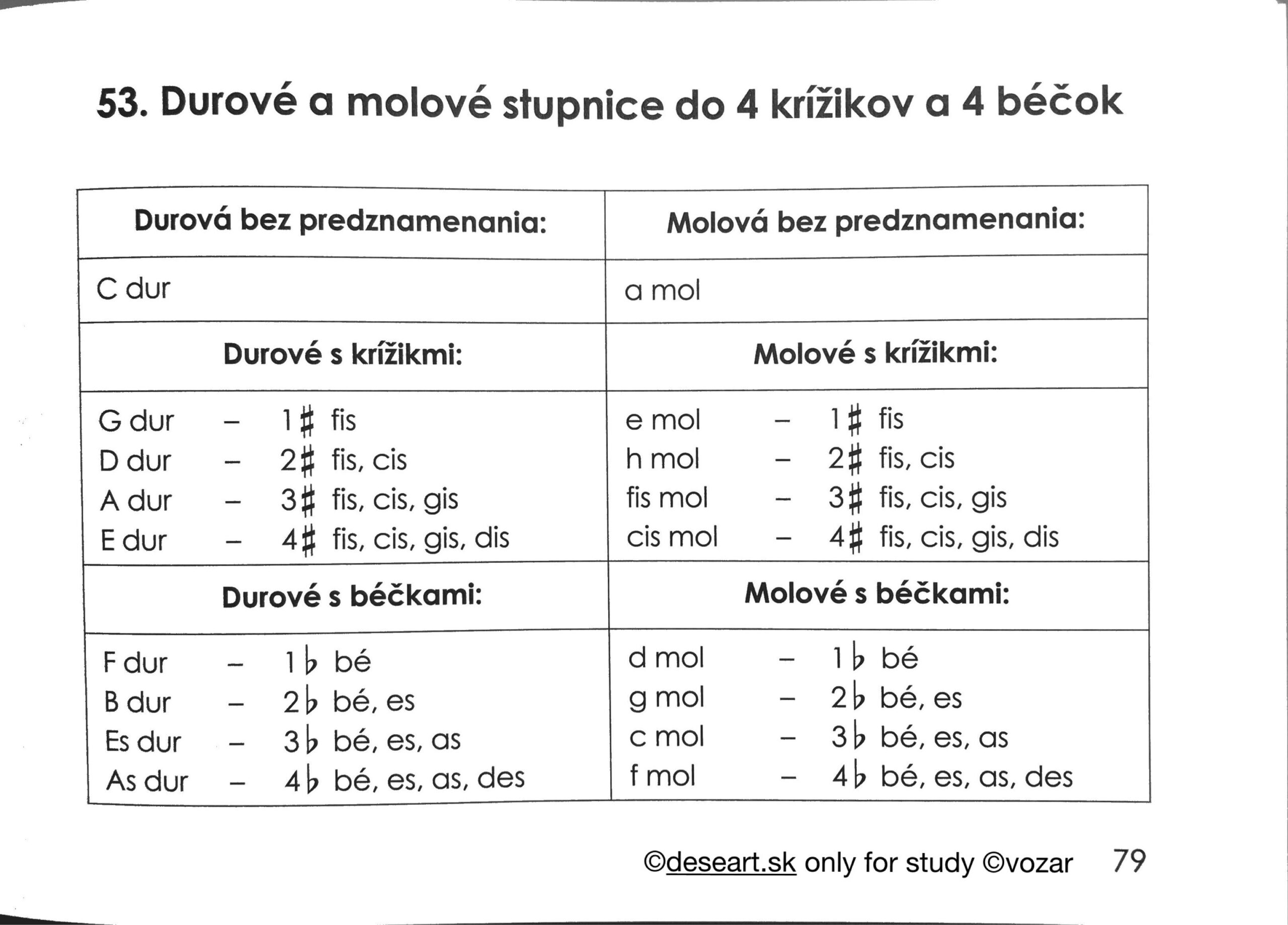 – Kapitola 44 – Molové stupnice do 4 béčok. Mať napísané v knižke podľa vzoru nižšie strany 64 až 66: