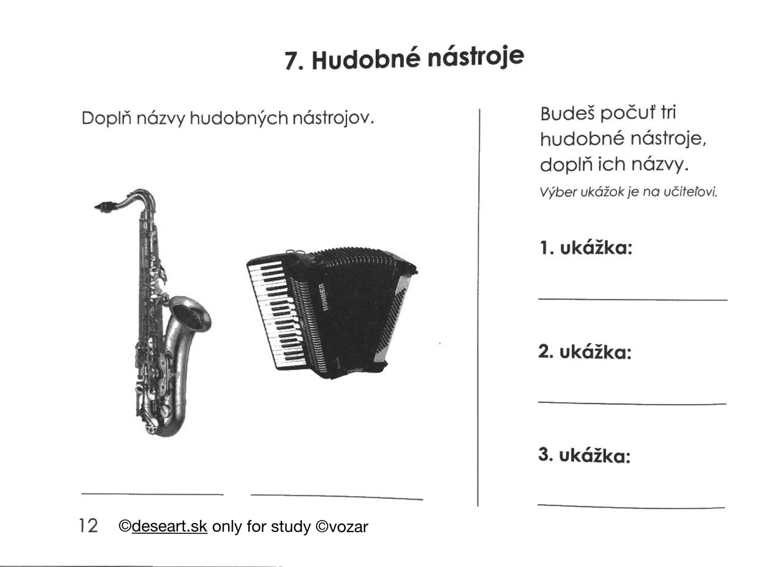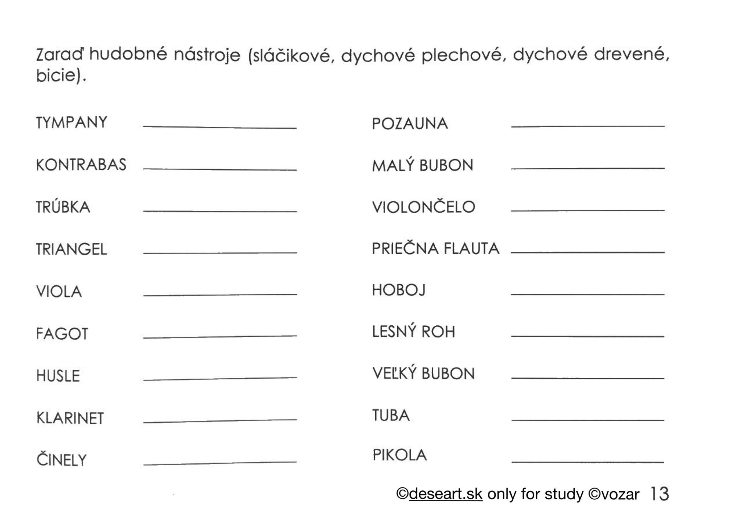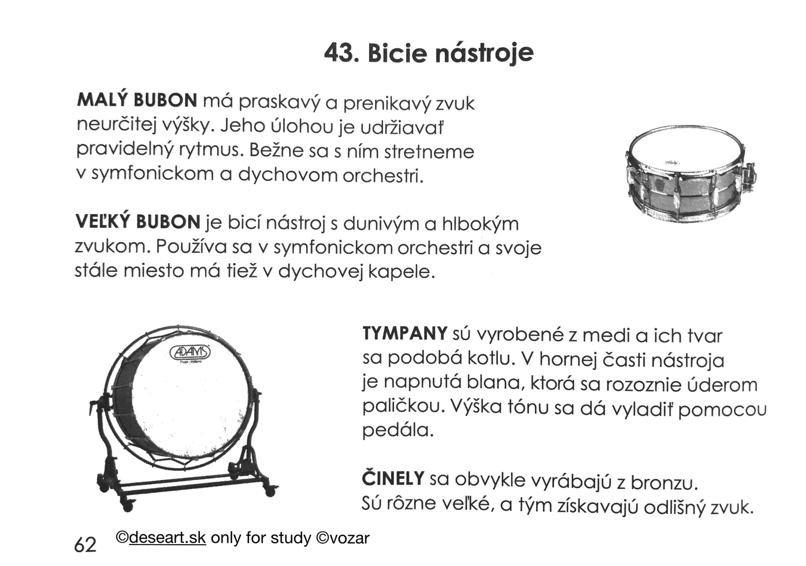 Preberané učivo – Hudobné nástroje kap. 35, 36 a 43. Pozri si hudobné ukážky na linkoch nižšie (roklikni ich):