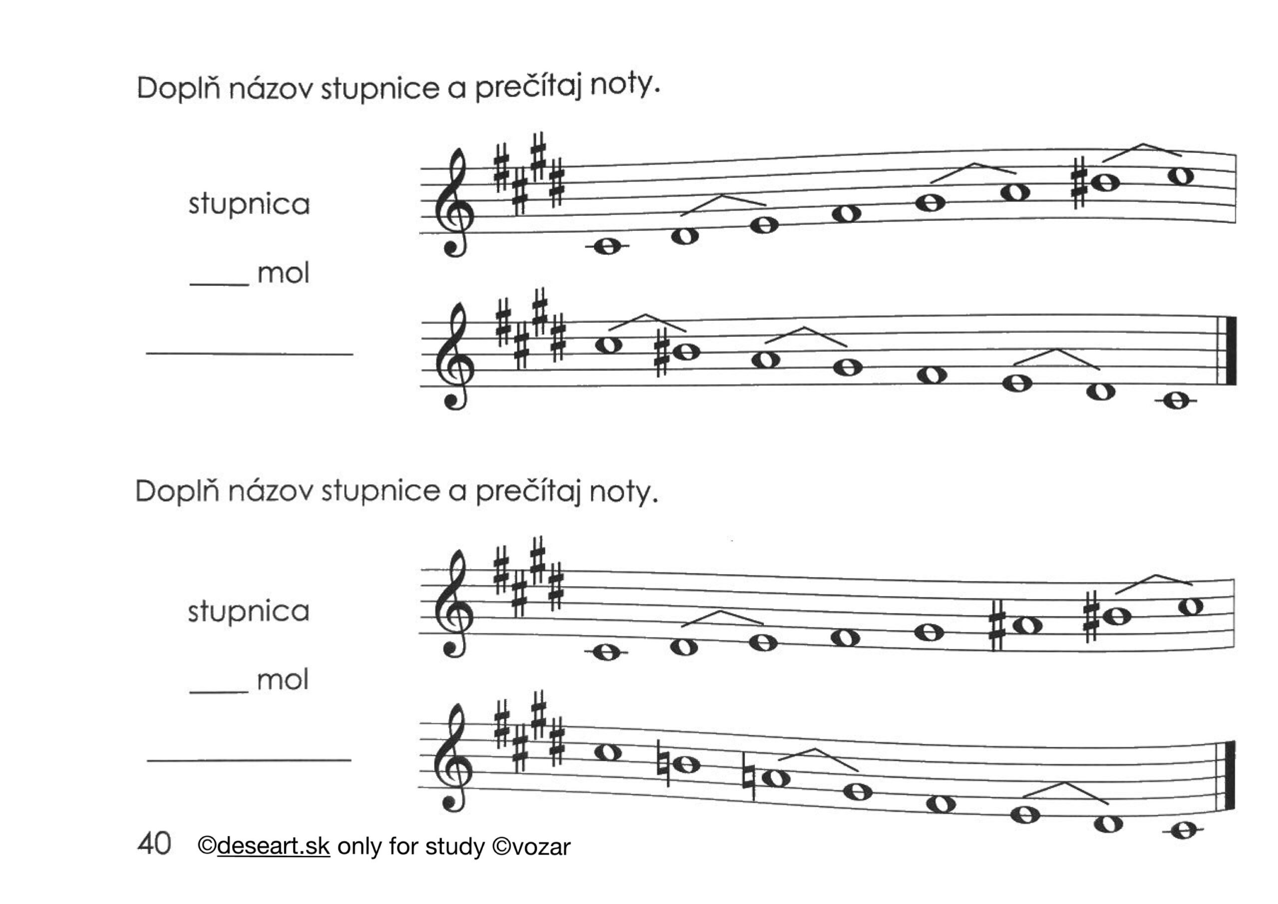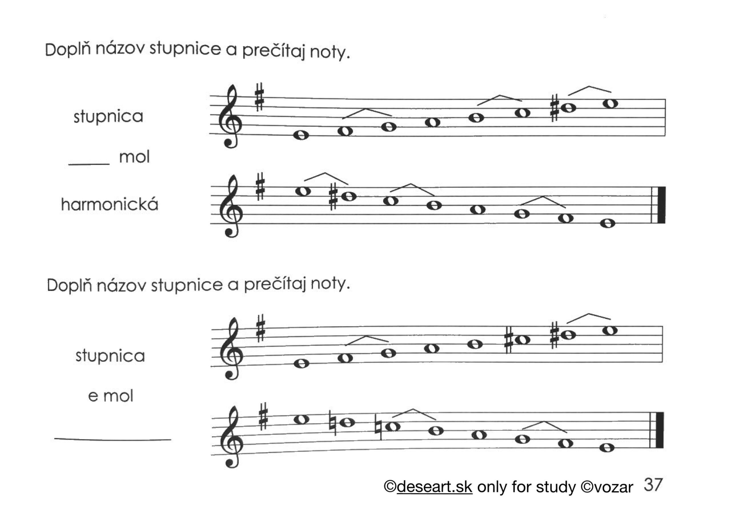 Úloha 3. marca 2025: vedieť napísať stupnicu e mol podľa s. 37 a h mol podľa s. 38