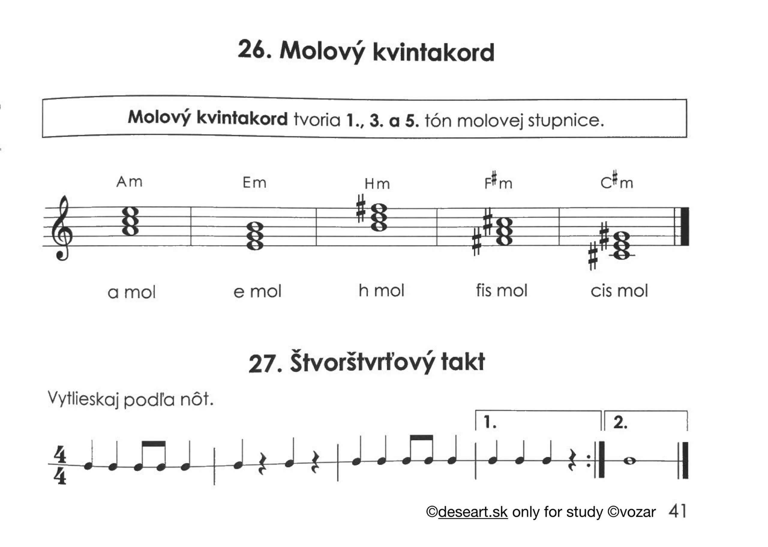 Úloha na 26. 5. – kapitola 42 dole podľa obrázka prepísať do knižky a vedieť, čo je to dvojpolový takt, ďalej kapitola 26 -akordy napísať do zošita a 27 vedieť vytlieskať a očíslovať