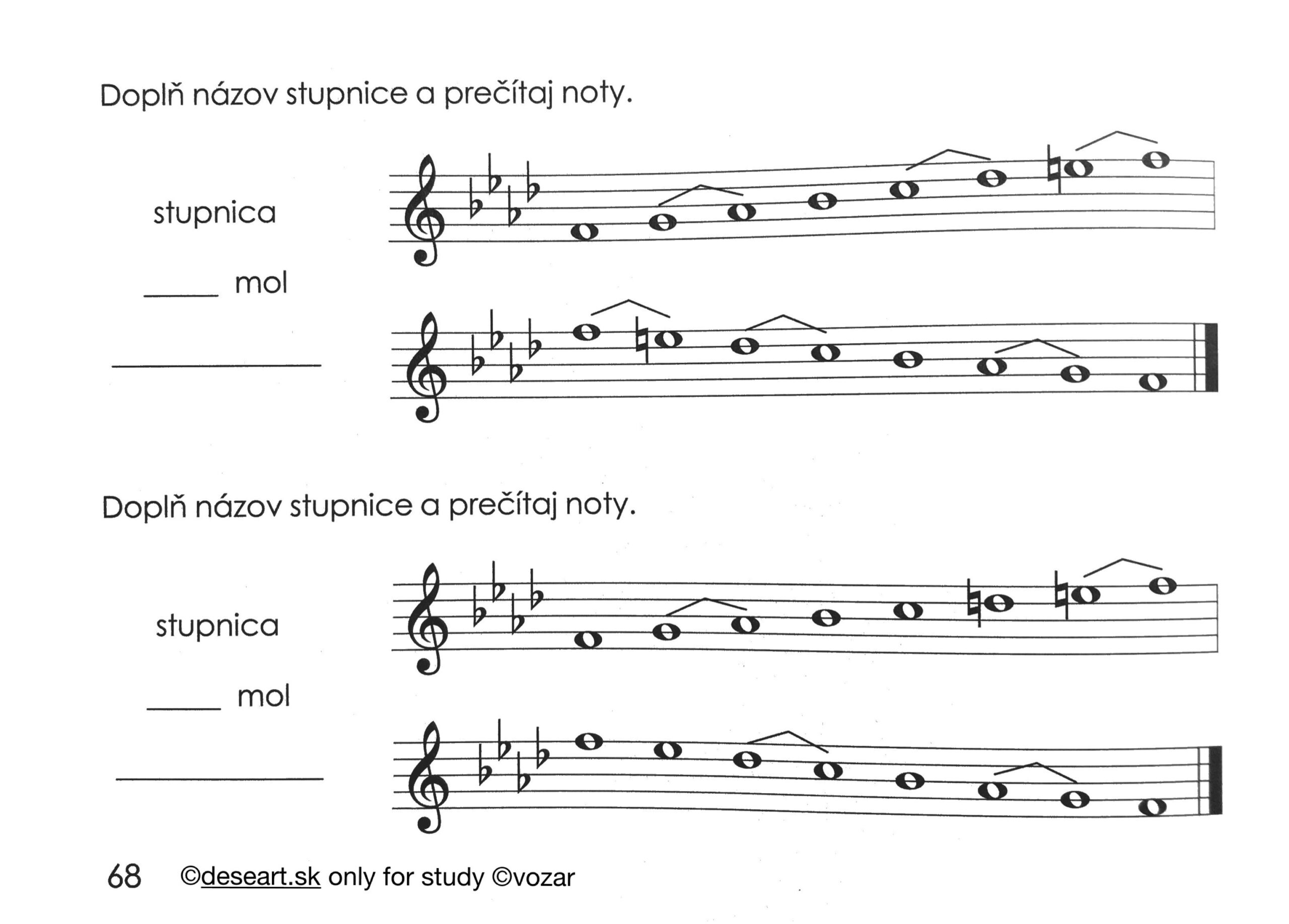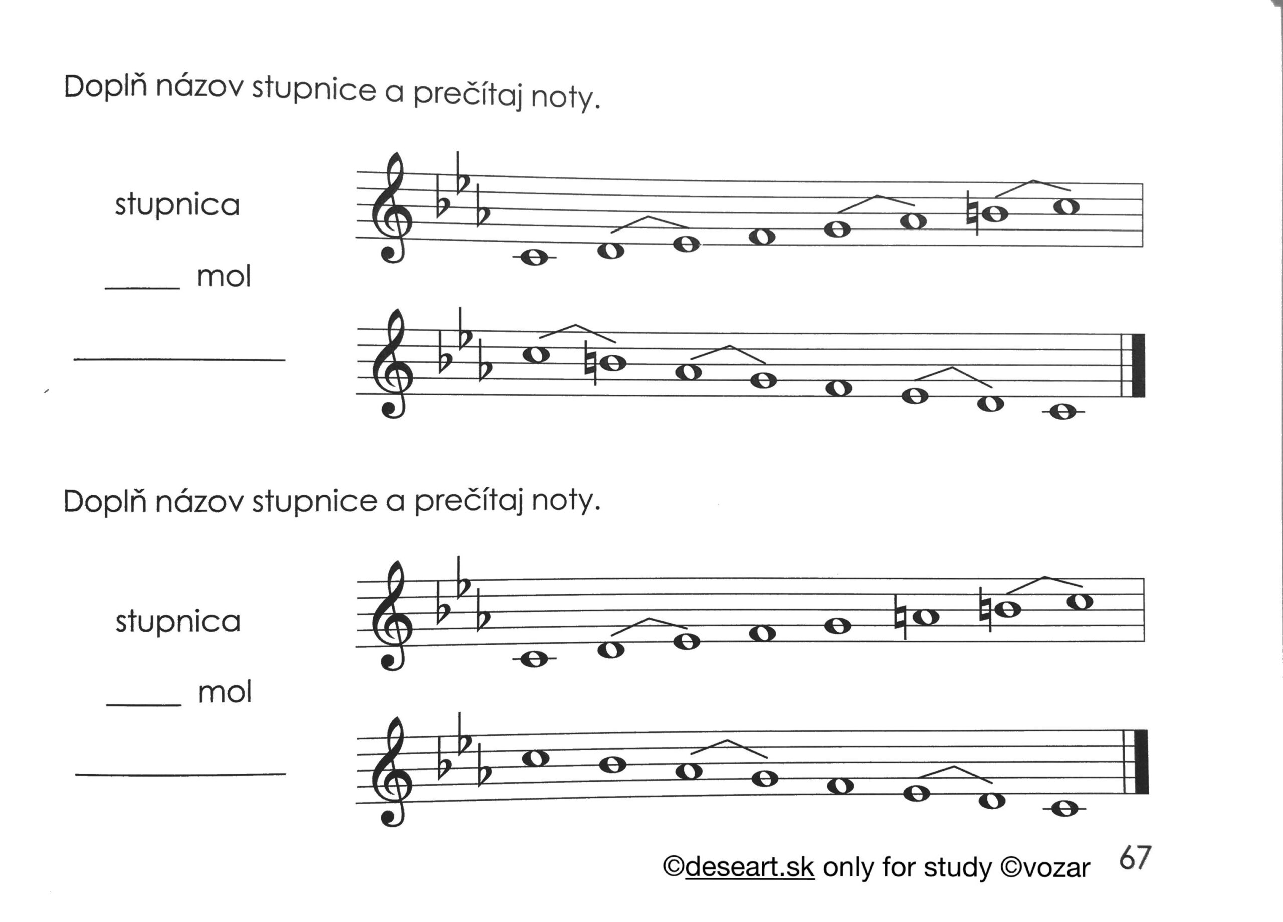 Dňa 7. 4. 2025 sme preberali stupnicu c mol a f mol v knihe na s. 67 a 68. Je potrebné mať v knihe vypracované podľa nasledujúcich obrázkov všetky molové stupnice do 4 béčok od s 64 v učebnici: