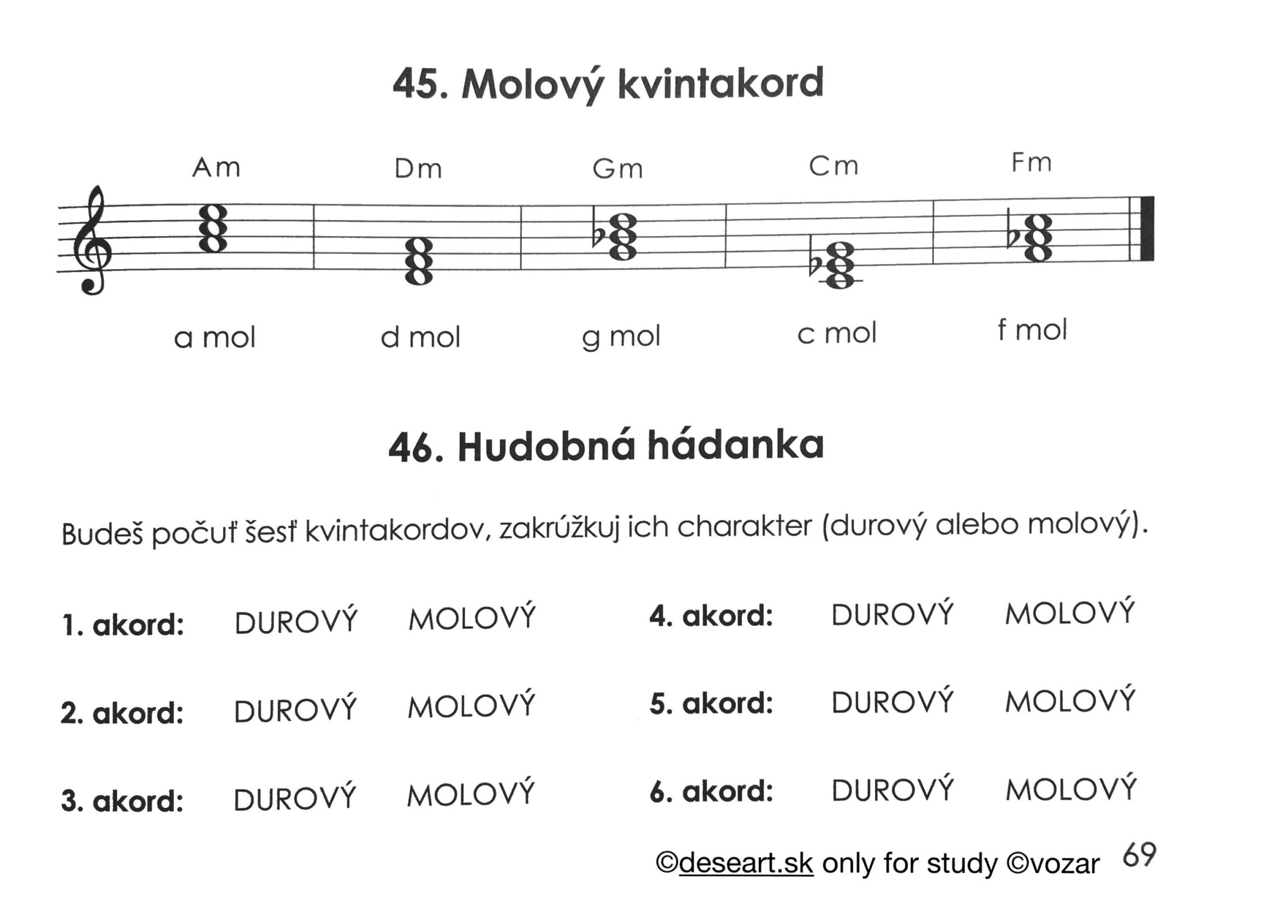 Úloha na 2. júna: kap. 45 – prepísať do zošita a vedieť, kap. 46 a 49. Skúšam: vedieť napísať stupnicu c mol melodickú (s. 67), nasp. akordy kap. 46.